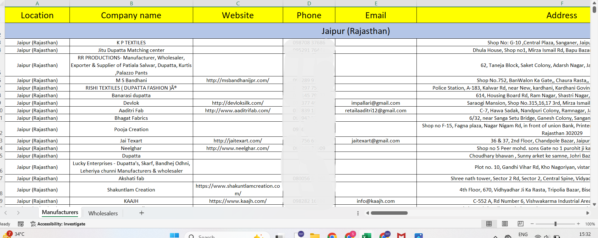 Many people have asked me for Dupatta Manufacturers and Wholesalers List contacts. So I’ve created a simple Excel sheet with: