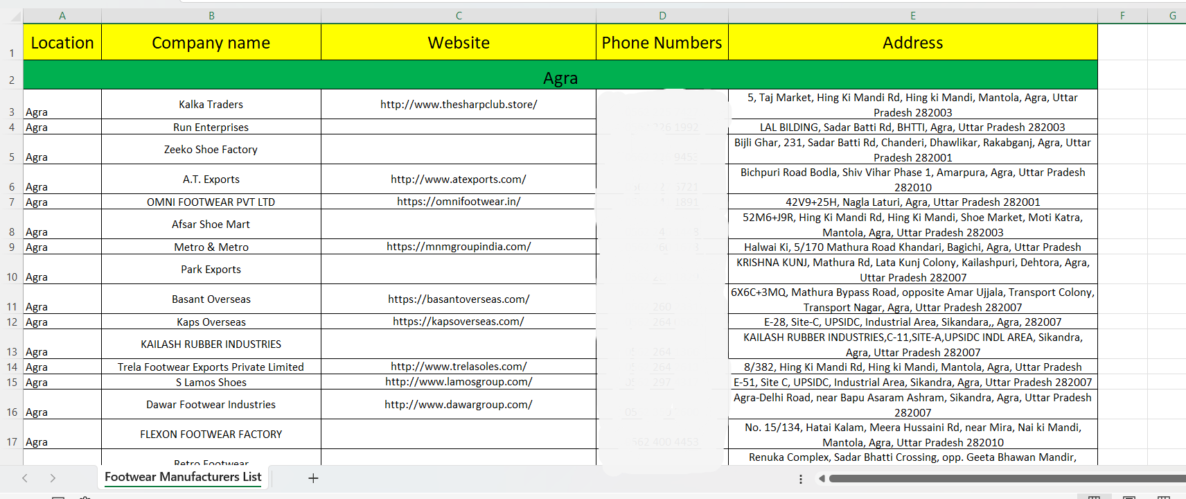 Many people have asked me for Footwear Manufacturers contacts. So I’ve created a simple Excel sheet with: